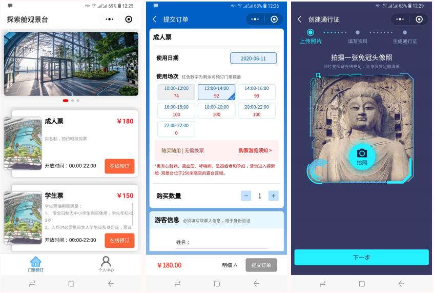 小程序訂票采集人臉后刷臉入園