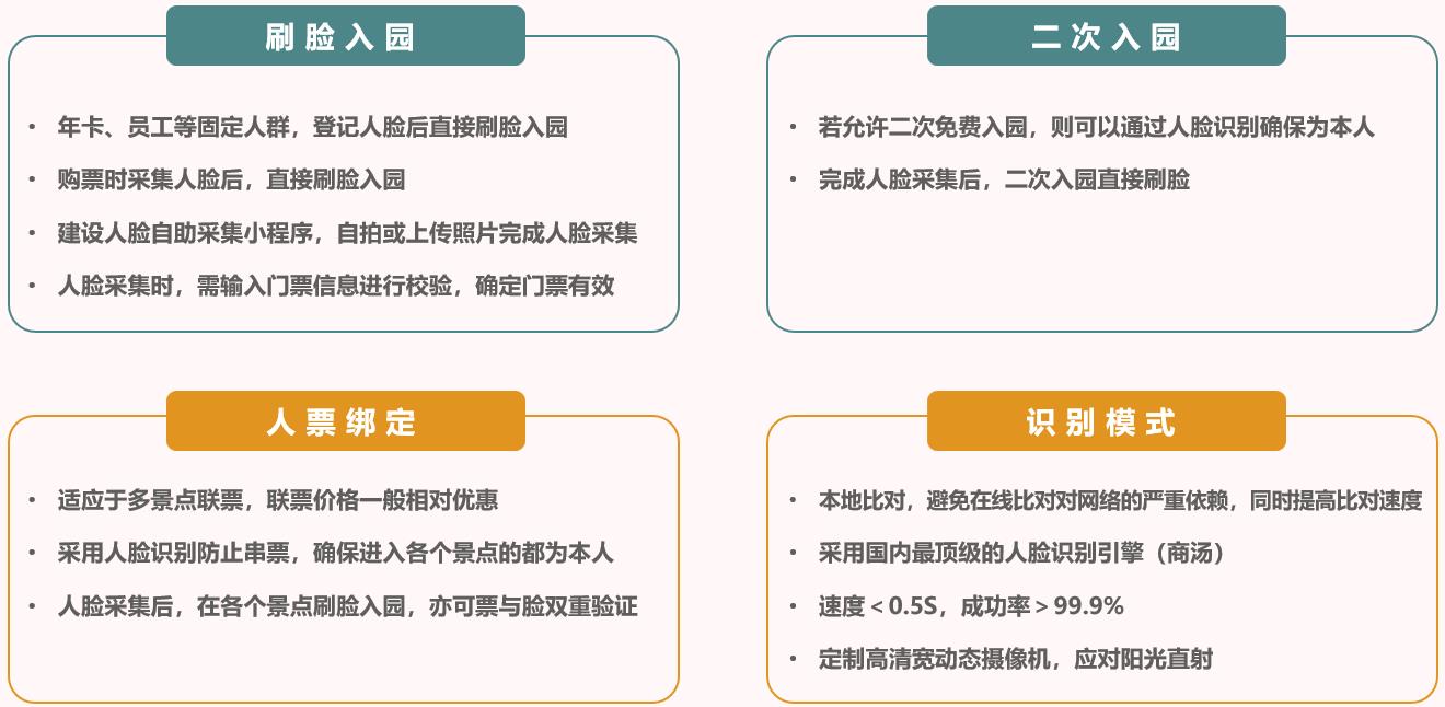 人臉識(shí)別技術(shù)為當(dāng)下熱門應(yīng)用,我司已有多年的系統(tǒng)開發(fā)和應(yīng)用經(jīng)驗(yàn),如旅游景區(qū)、海關(guān)、機(jī)場(chǎng)、高鐵等 固定人群:年卡、工作人員、會(huì)員等固定人群,首次登記時(shí)采集人臉,后續(xù)可直接刷臉入場(chǎng)。 普通游客:公眾號(hào)/小程序或窗口購(gòu)票可采集人臉,到場(chǎng)后直接在閘機(jī)刷臉進(jìn)入。