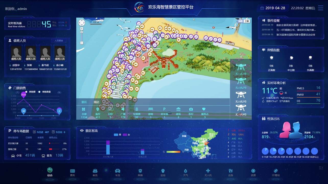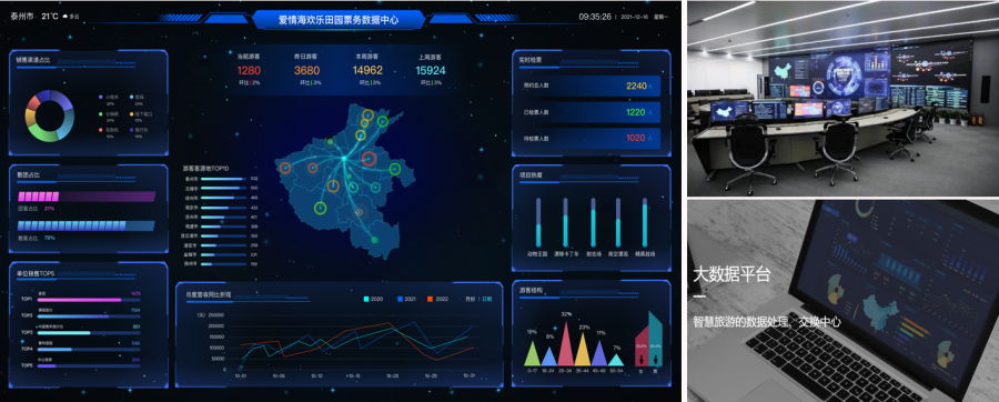 接入視頻監(jiān)控、廣播、LED大屏、車船調(diào)度等,實(shí)現(xiàn)集中管理 一張GIS圖,實(shí)現(xiàn)智慧景區(qū)的全部信息化平臺(tái)的管理及展示 綜合大數(shù)據(jù)平臺(tái),進(jìn)行全業(yè)態(tài)、全維度數(shù)據(jù)挖掘、分析、預(yù)測(cè)