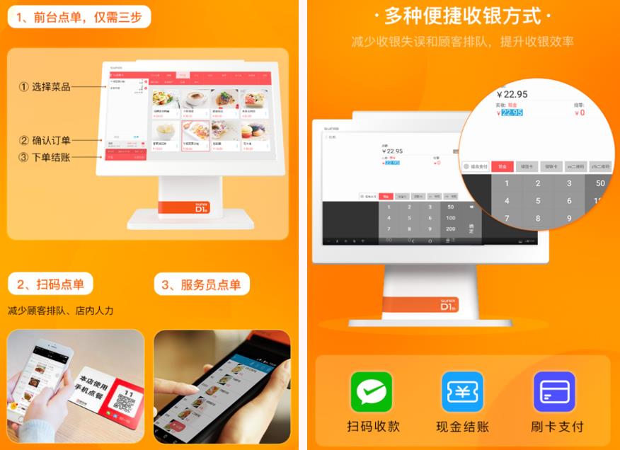 前臺(tái)收銀機(jī)、手持機(jī)點(diǎn)餐結(jié)算