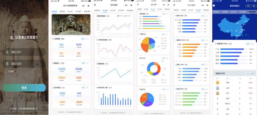 客源地、年齡、性別等展示,售檢票數(shù)據(jù)及曲線等